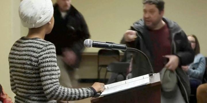 Man tackled to ground after spraying unknown substance on Rep. Ilhan Omar at Minneapolis town hall