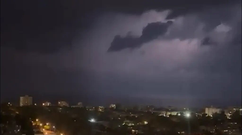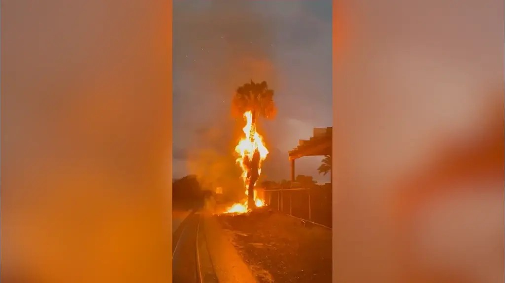 תיעוד דרמטי: ברק פגע בעץ הדקל - שעלה באש