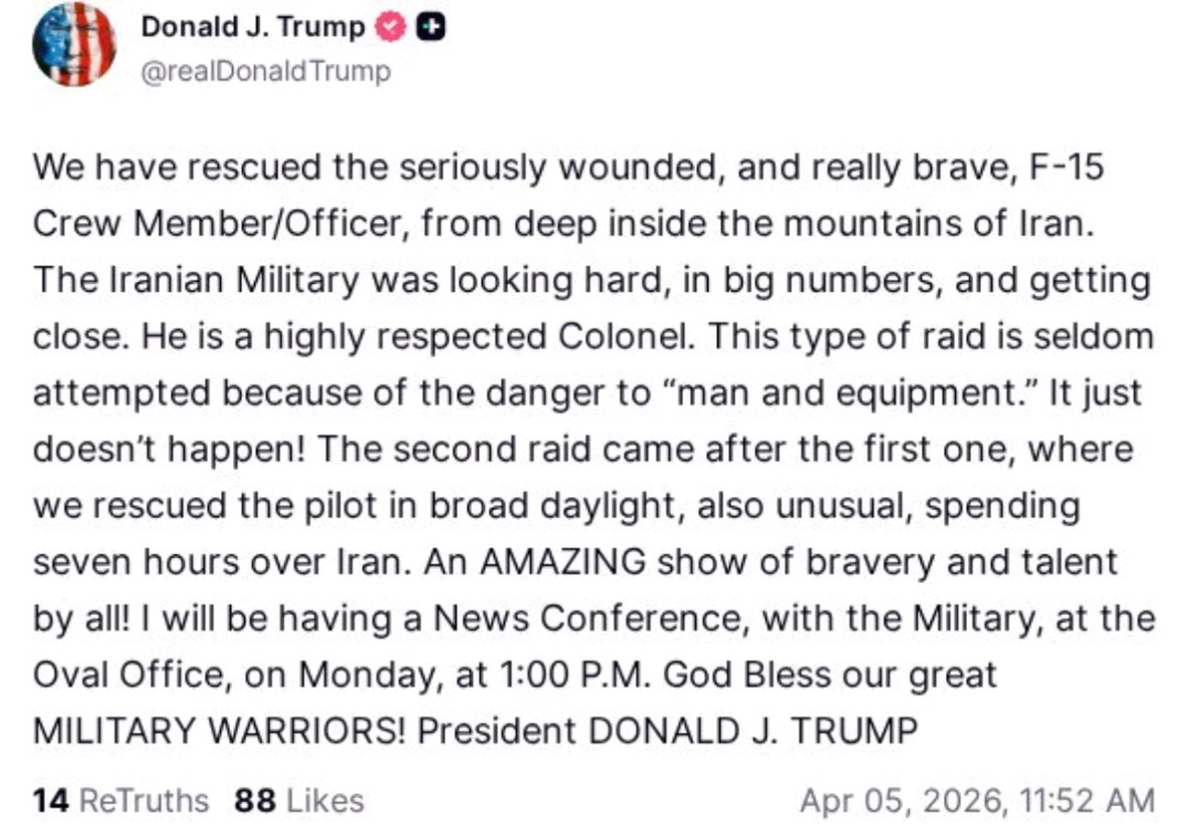 📷 טראמפ: מצבו של הקצין האמיץ שחילצנו קשה, צבא איראן חיפש אותו בכוחות גדולים וכבר התקרב אליו