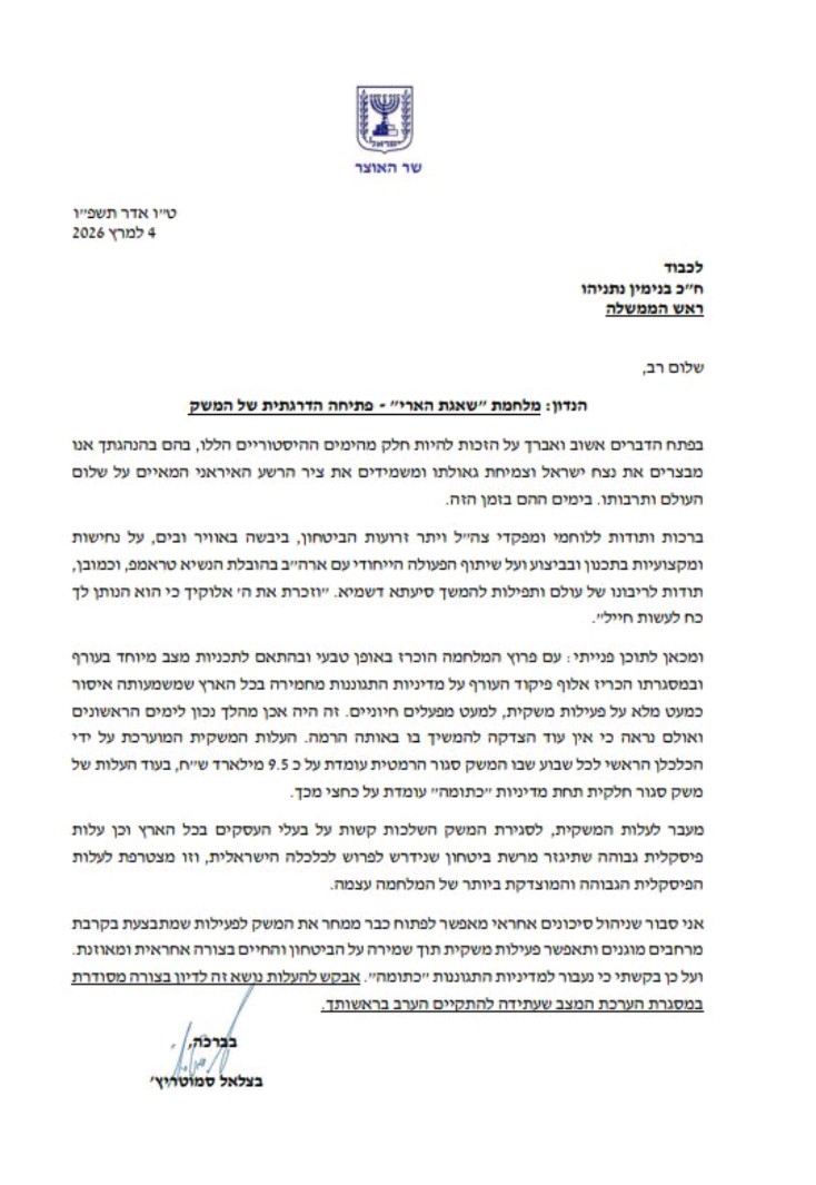📷 פרסום ראשון: בקרבת מרחב מוגן, כדי לצמצם עלויות - שר האוצר סמוטריץ' קורא לפתוח ממחר את המשק באופן מדורג
