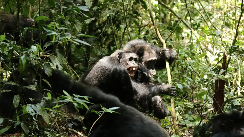נשיכות, חבטות בידיים, גרירה, בעיטות היו חלק משיטות "הלחימה" של שתי קבוצות שימפנזים באוגנדה, שהיו במשך שנים חלק מקהילה אחת עד שהתדרדרה לשנים של אלימות קטלנית. לפחות 28 פרטים נהרגו בעימותים, והחוקרים מאמינים שכמה סיבות הובילו לאירועים חסרי התקדים הללו