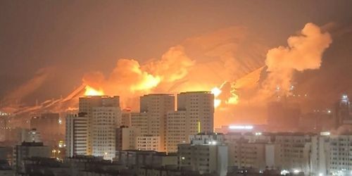 אש ותמרות עשן עקב תקיפות ברחבי טהרן