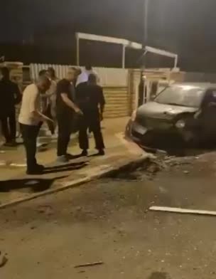 📹רכבים שרופים וחלקי טיל ברחוב: נזק רב נגרם מנפילת רסיסים בראש העין, אין נפגעים