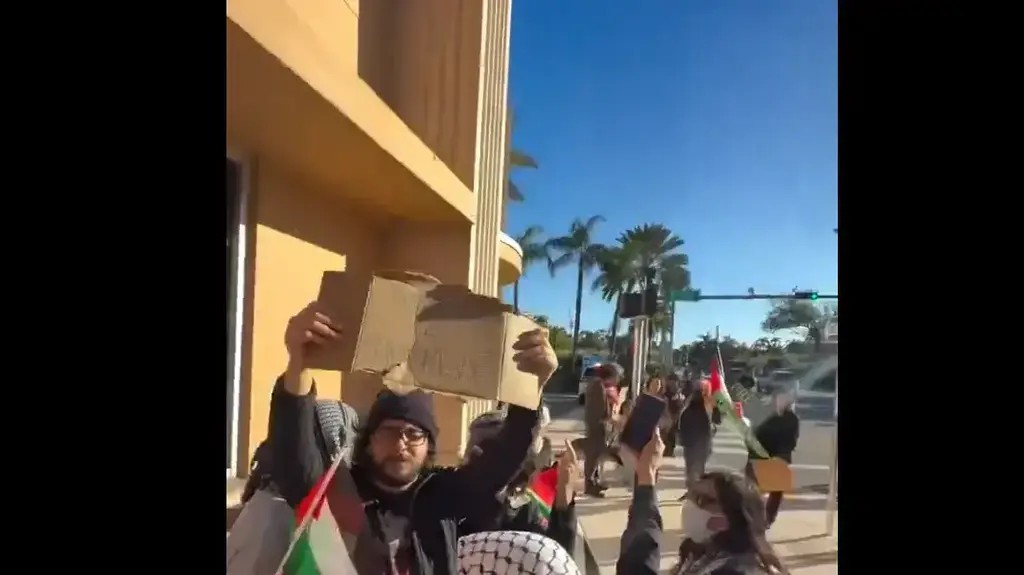 עם כאפיות ודגלי פלסטין: מפגינים התעמתו עם בני משפחת גואילי במיאמי | תיעוד