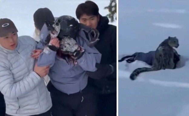 נדיר ומחריד: נמר שלג תקף גולשת סקי שניסתה לצלם אותו