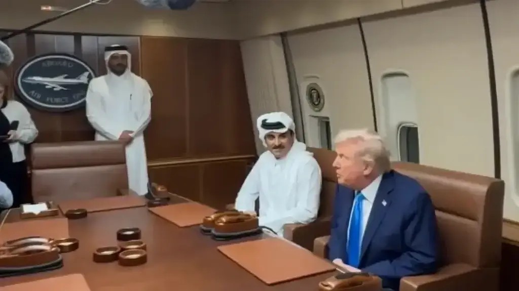 📷 טראמפ ב"אייר פורס 1" עם אמיר קטאר: "אם יהיה צורך - תשלחו כוחות לעזה"