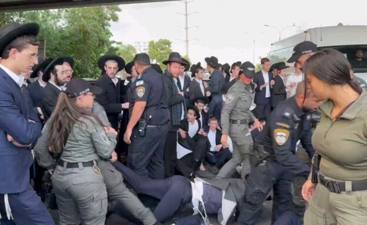 דופקים על חלונות רכבים: עימותים אלימים במחאת החרדים בכביש 4, מפגין נעצר | תיעוד