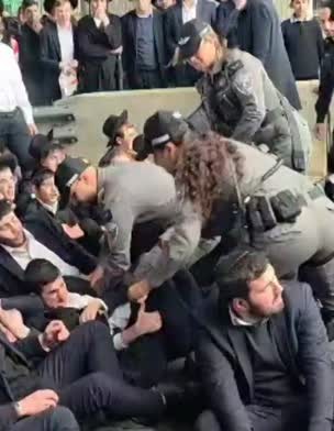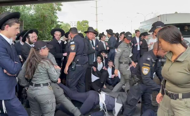 📹 מחאת הפלג הירושלמי בכביש 4: שוטרים מנסים לפנות את הכביש