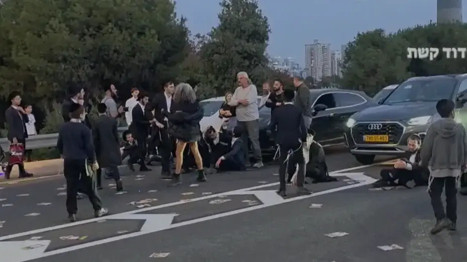 כביש 4 נחסם במחלף גהה בעקבות הפגנת חרדים, עימותים במקום | תיעוד