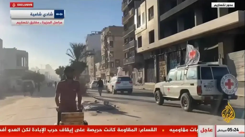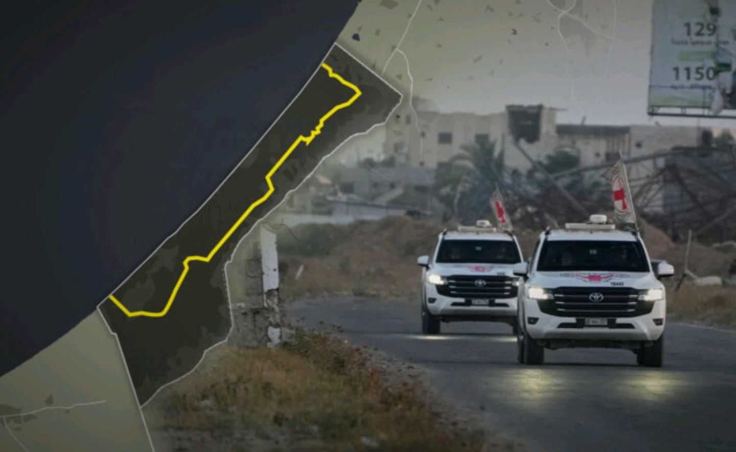רכבי הצלב האדום נכנסים לרפיח כדי להשתתף בחיפושים אחר גופות חטופים
